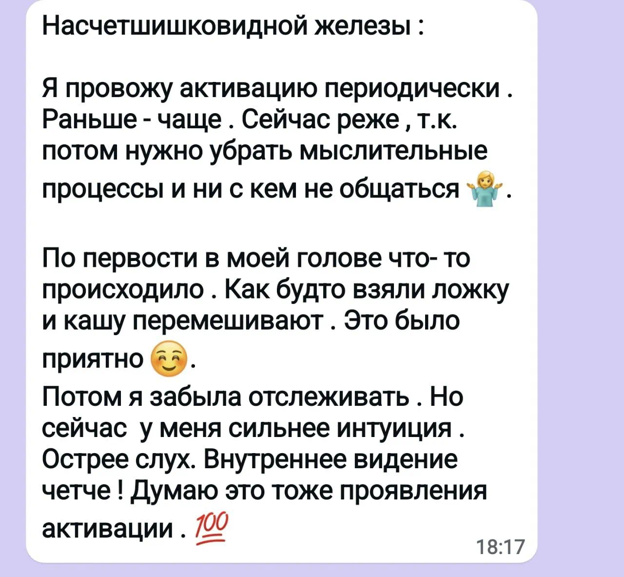 Но если эпифиз в тишине и человек далёк от погружения в собственные энергии, глубокие ментальные прораработки на тонком плане, эпифиз работает на минимальной скорости и возможностях.