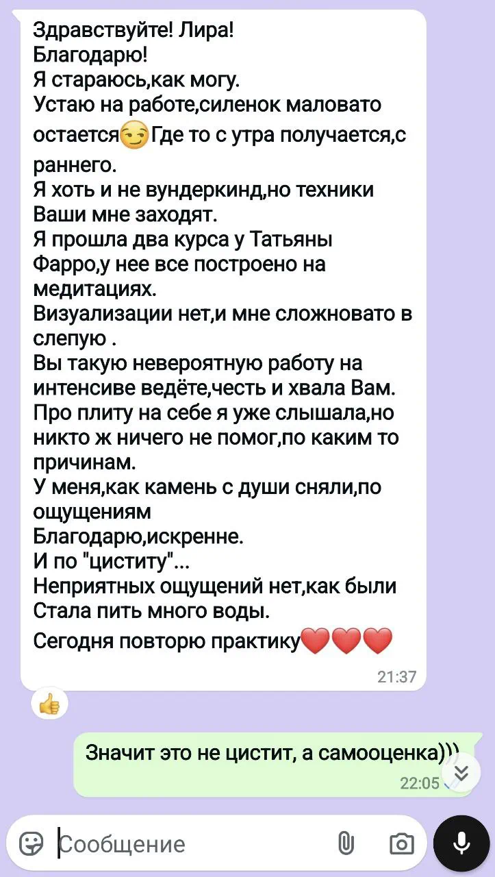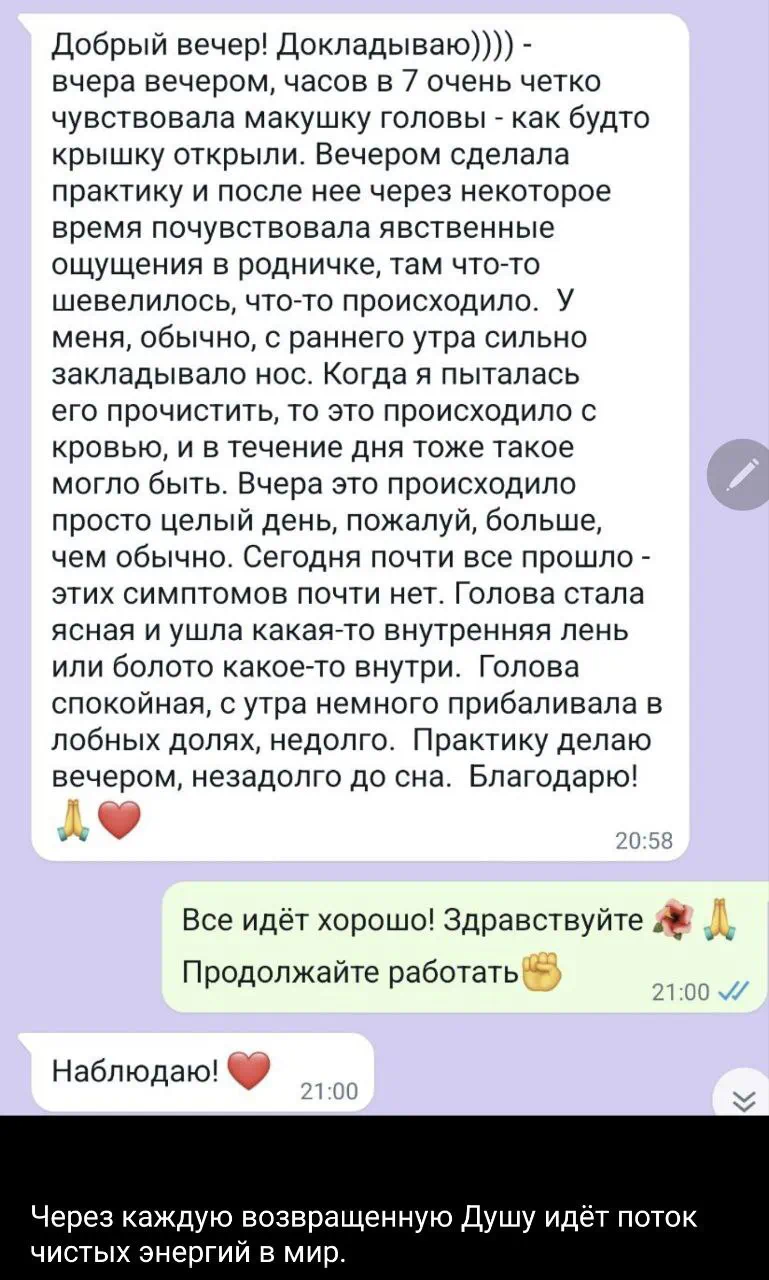 Со временем вы научитесь качественно управлять движением собственных энергий по всем координатам физического тела, в том числе устранять болевые ощущения через разблокировку энергетических потоков.