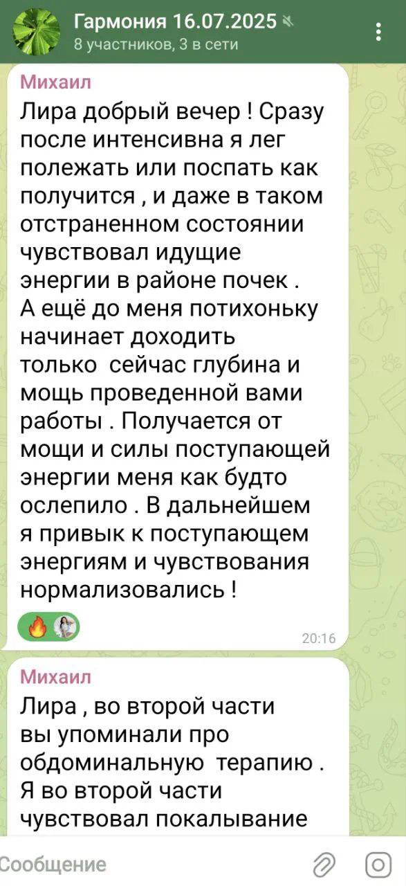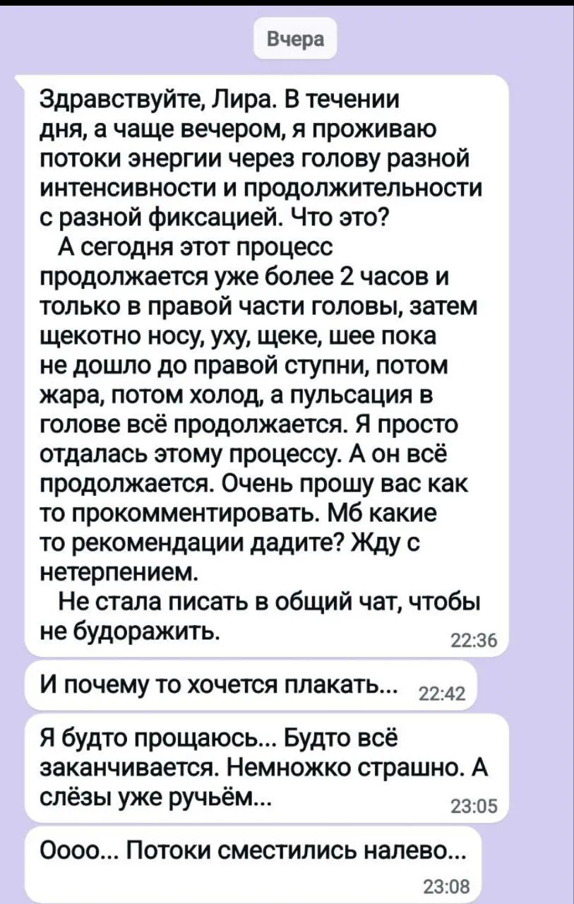 - В этот период моя задача диагностировать тонкоматериальную структуру каждого участника на предмет энергодифицитного состояния организма.
